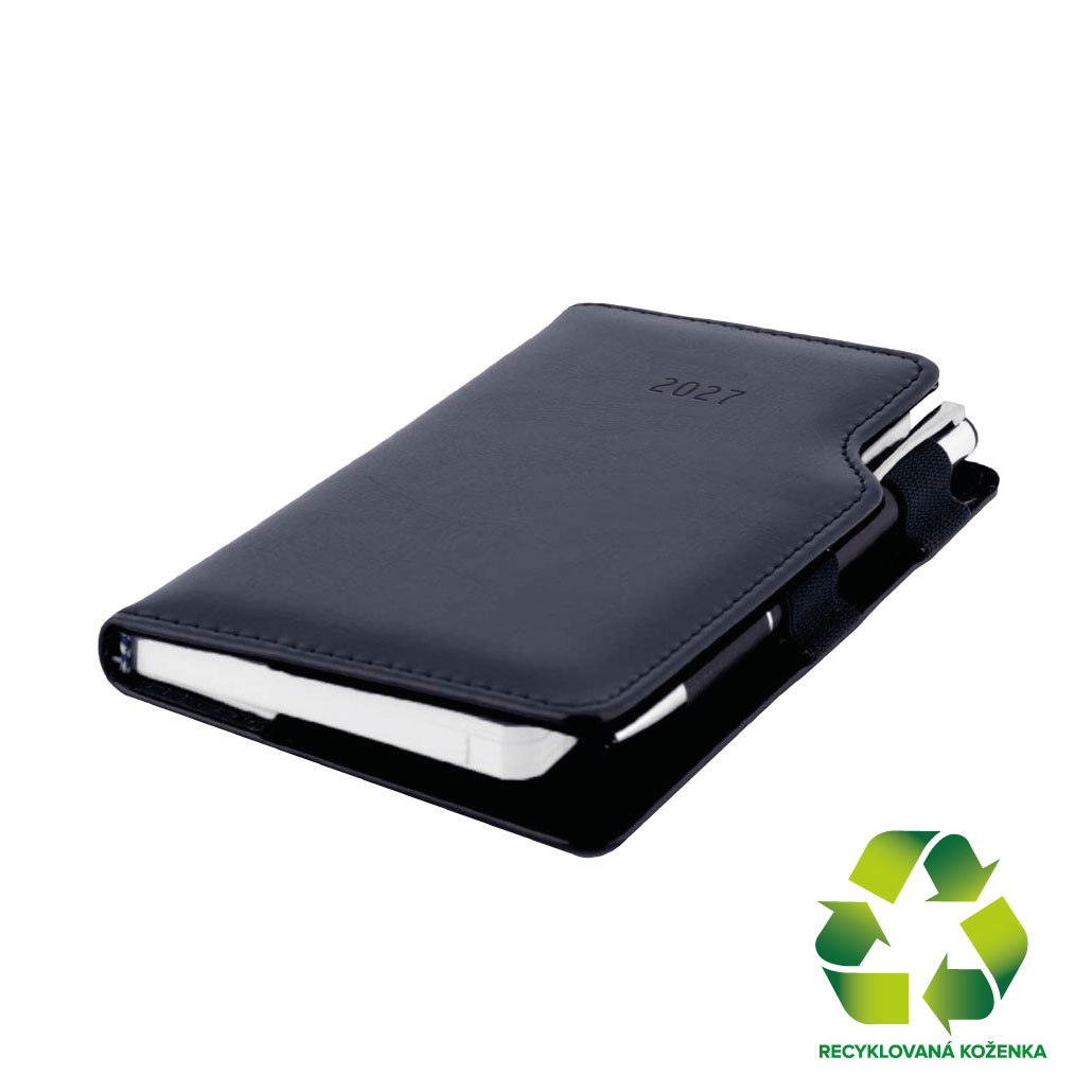 Kalendarz książkowy GEP z długopisem tygodniowy kieszonkowy 2027 czeski - czarny (czarne wnętrze) - skóra ekologiczna z