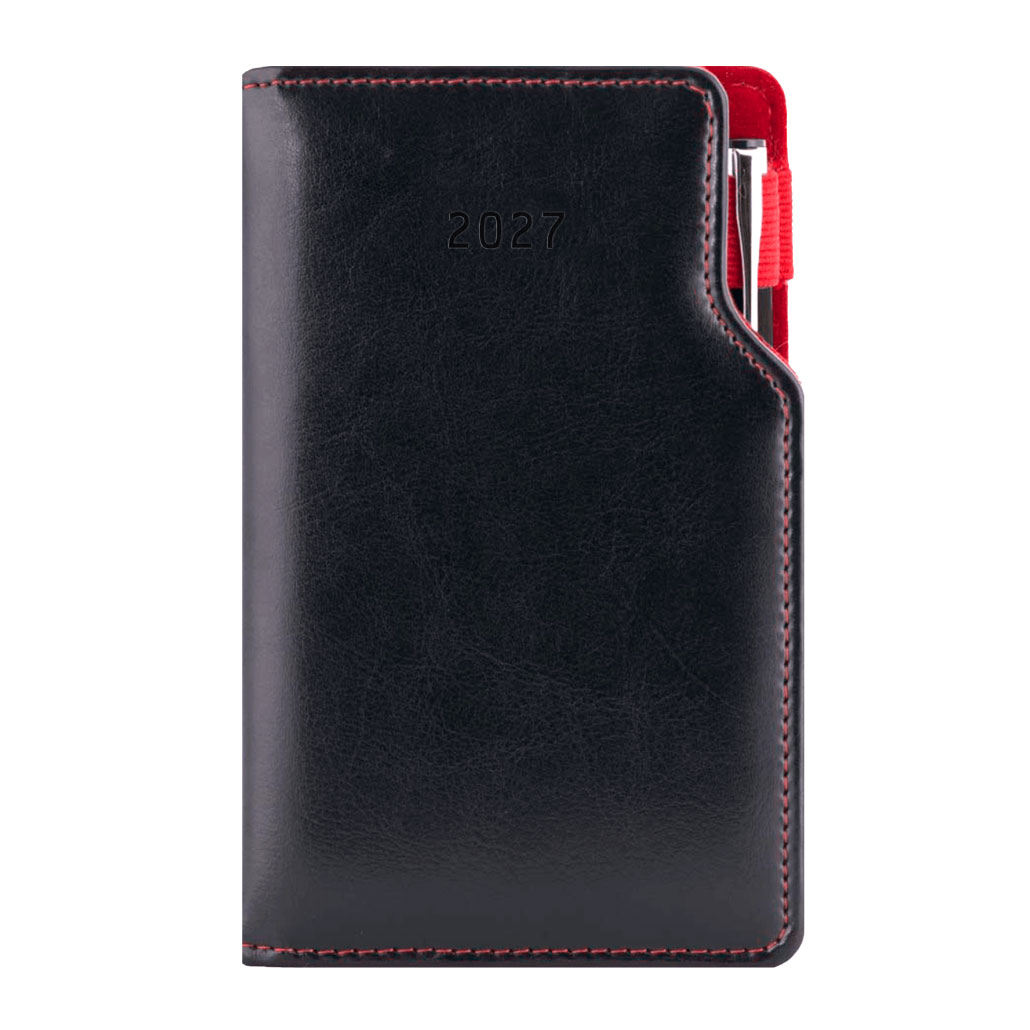 Kalendarz książkowy GEP z długopisem tygodniowy kieszonkowy 2027 czeski - czarny (czerwone wnętrze)