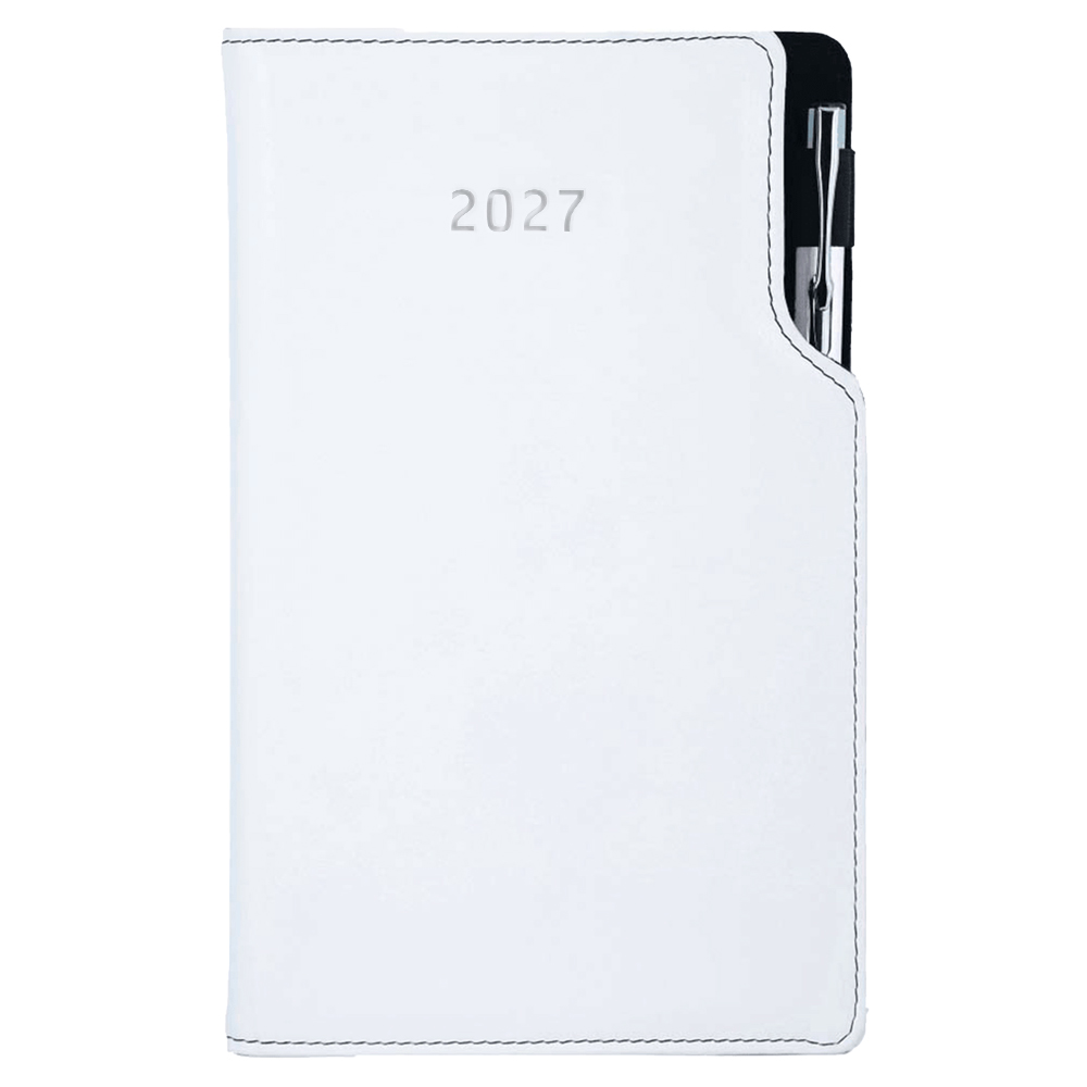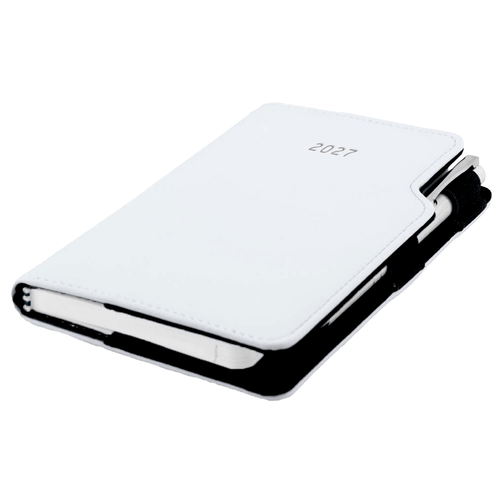 Kalendarz książkowy GEP z długopisem tygodniowy kieszonkowy 2027 słowacki?? - biały (czarne szwy)