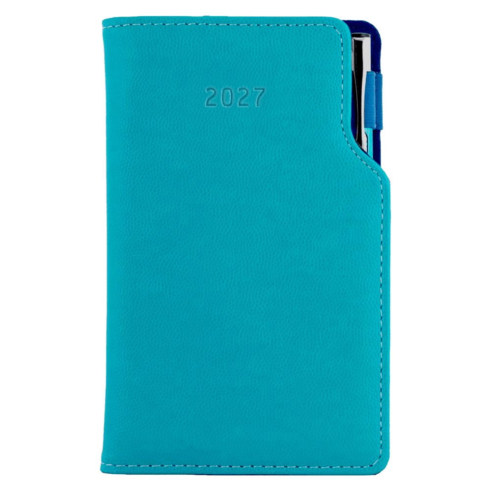 Kalendarz książkowy GEP z długopisem tygodniowy kieszonkowy 2027 słowacki?? - turkusowy (niebieskie wnętrze)