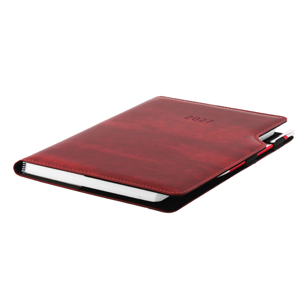 Kalendarz książkowy GEP z długopisem tygodniowy z notesem A5 2027 CZ/SK - bordowy smugowaty