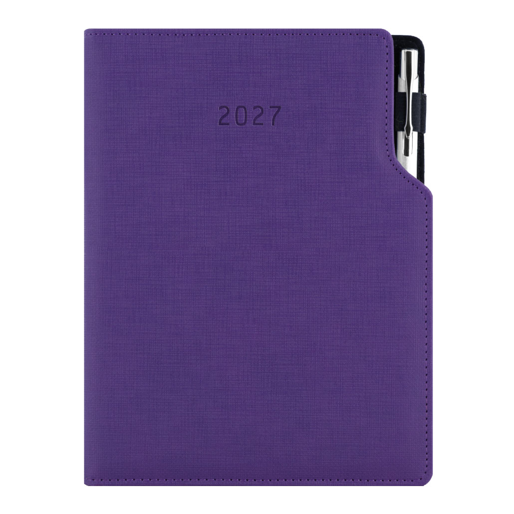 Kalendarz książkowy GEP z długopisem tygodniowy z notesem A5 2027 CZ/SK - fioletowy
