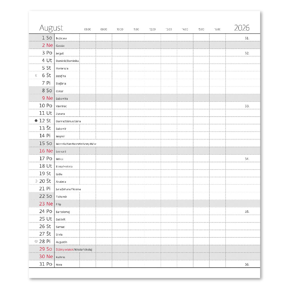 Kalendarz: Słowacki miesięczny nominalny
