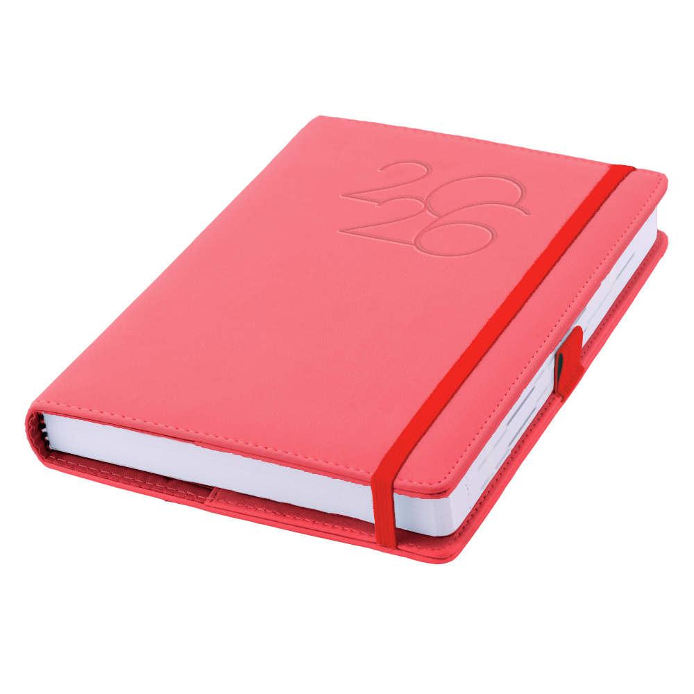 Kalendarz książkowy POLY dzienny A5 2026 czeski - czerwony