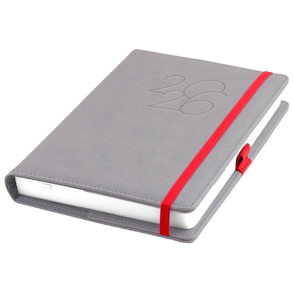 Kalendarz książkowy POLY dzienny A5 2026 polski - szary/czerwona gumka