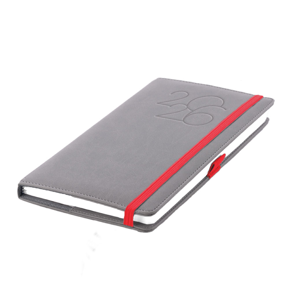 Kalendarz książkowy POLY tygodniowy kieszonkowy 2026 polski - szary/czerwona gumka