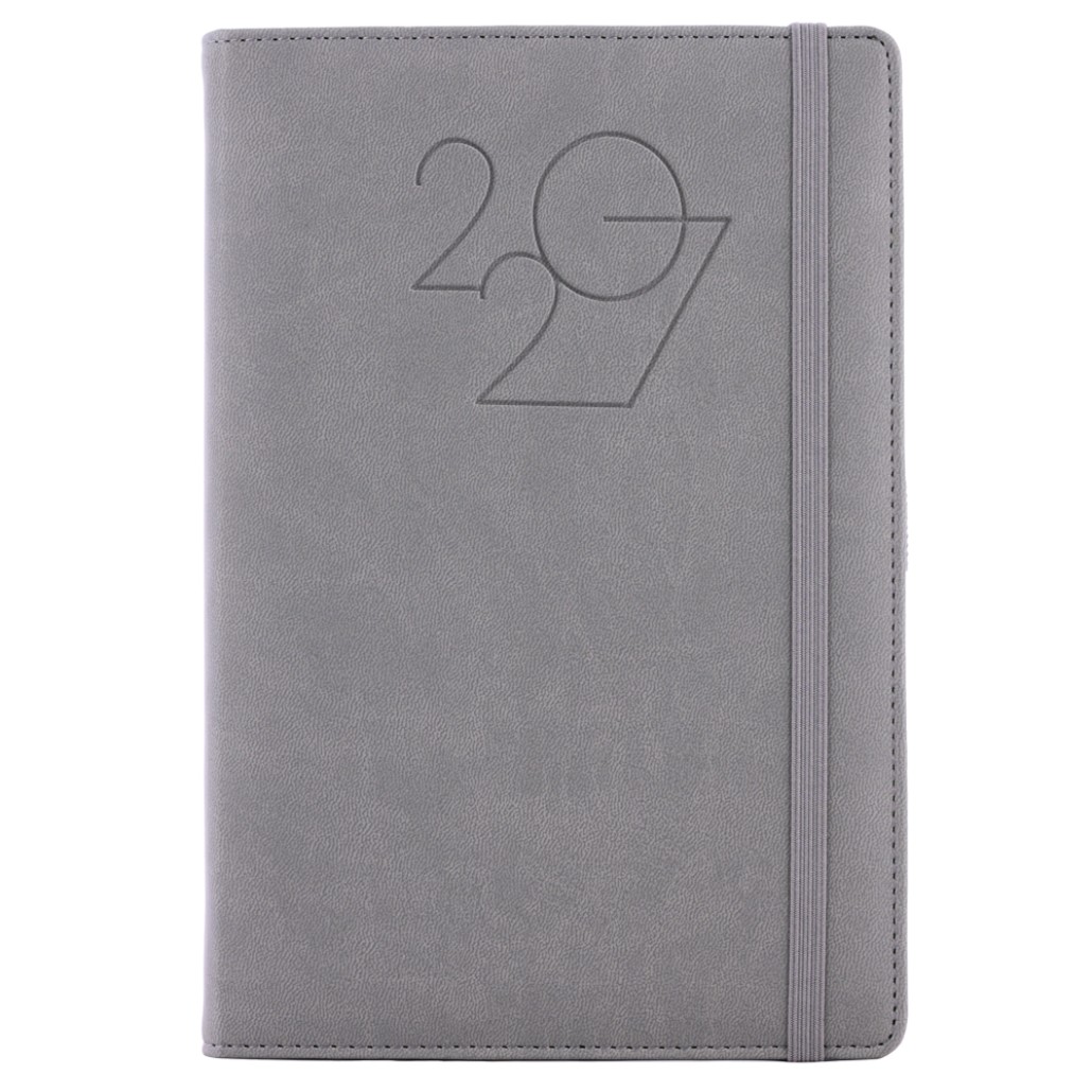 Kalendarz książkowy POLY tygodniowy z notesem A5 2027 CZ/SK - szary