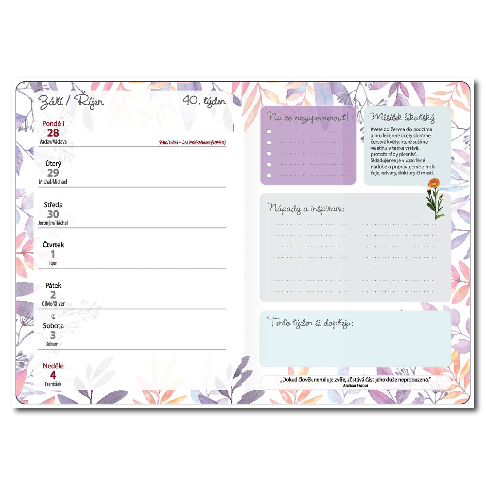 Kalendarz książkowy tygodniowy B6 Ziołowy Flowers z gumka