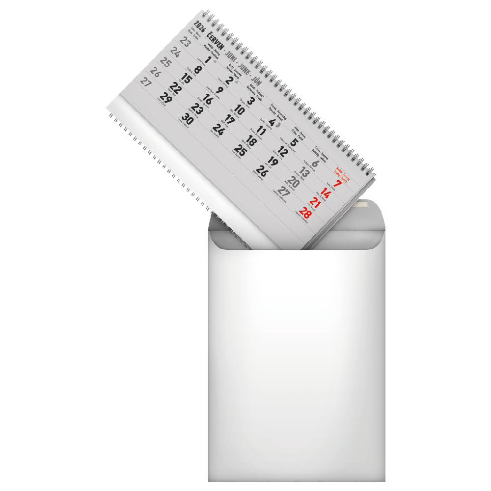 Kalendarz ścienny 2026 4-miesięczny standardowy składany szary - z czeskimi imionami