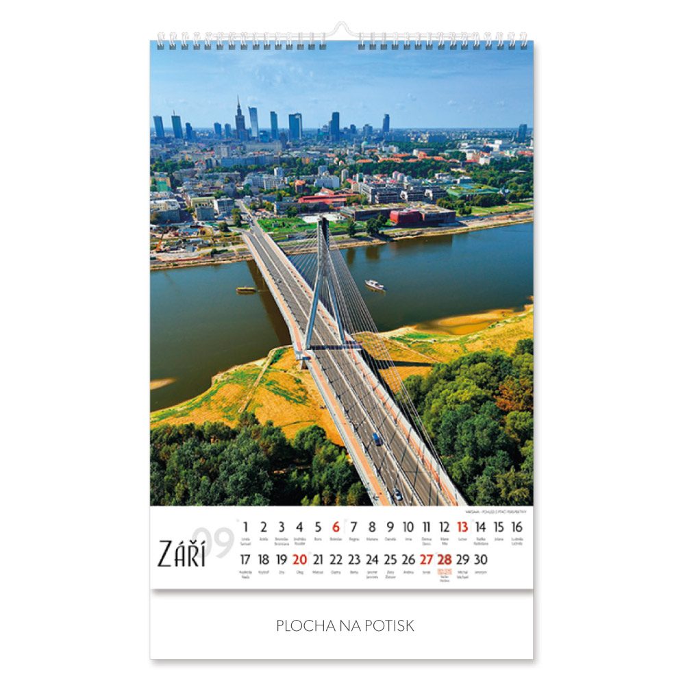 Nadruk na stopce (pleckach). Możliwość produkcji kalendarza na zamówienie (na zapytanie, według specyfikacji).