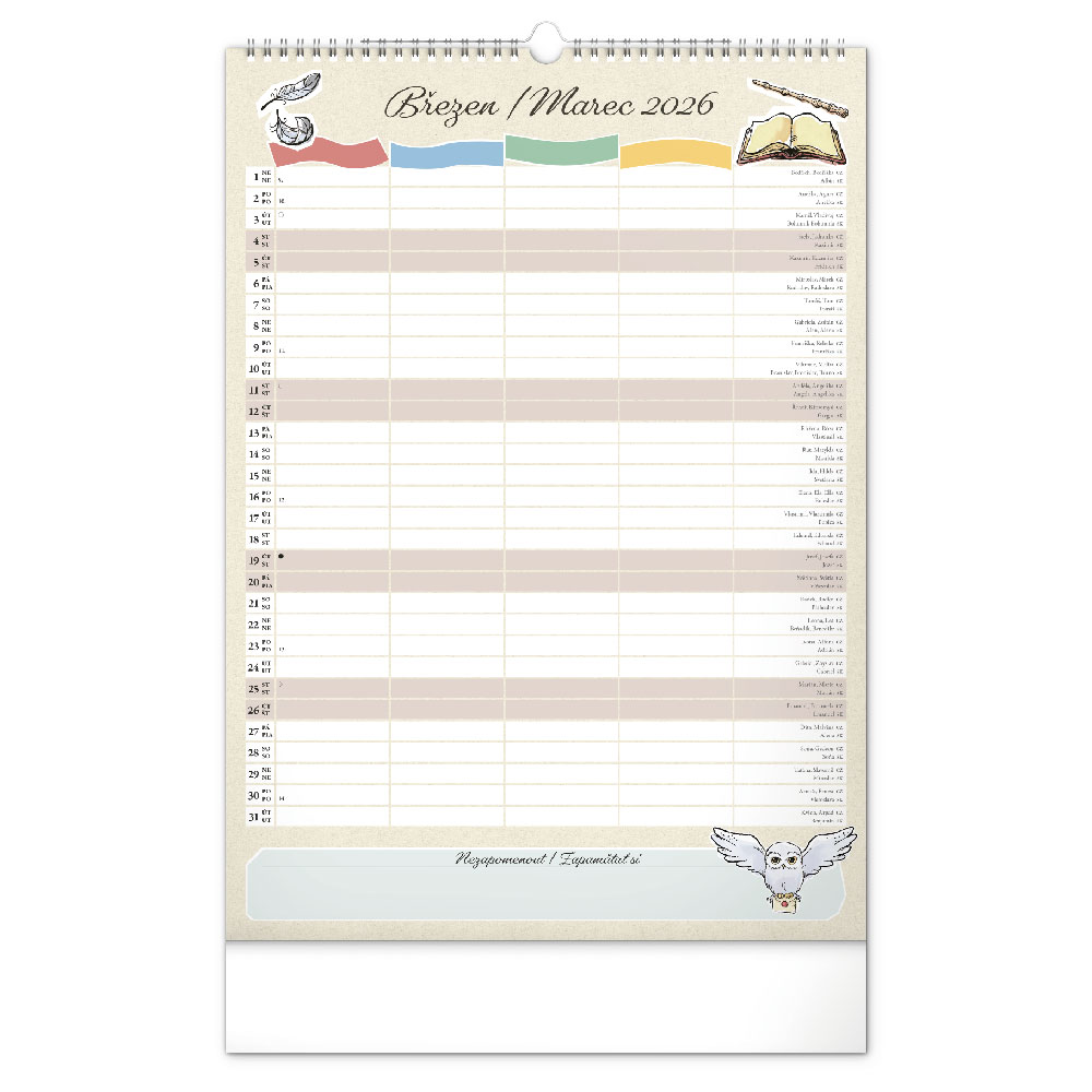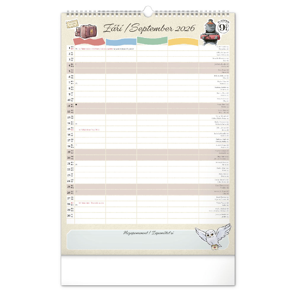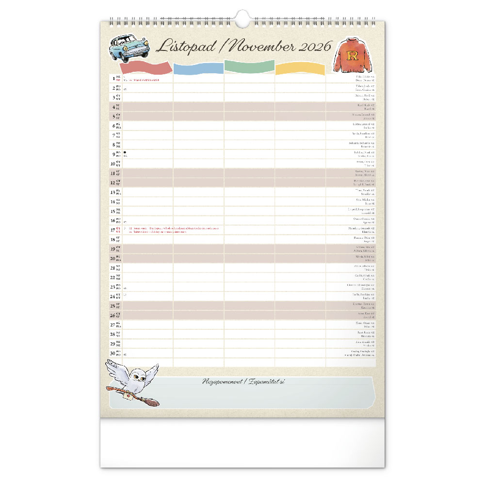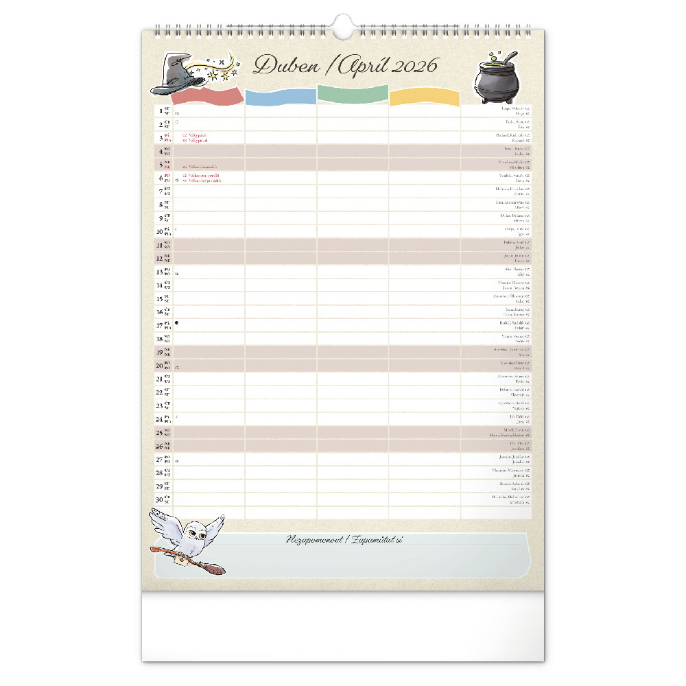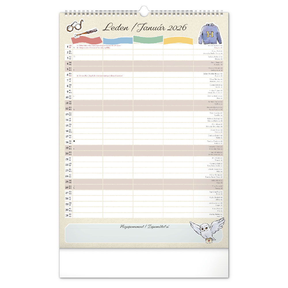 Kalendarz ścienny 2026 Planer rodzinny Harry Potter