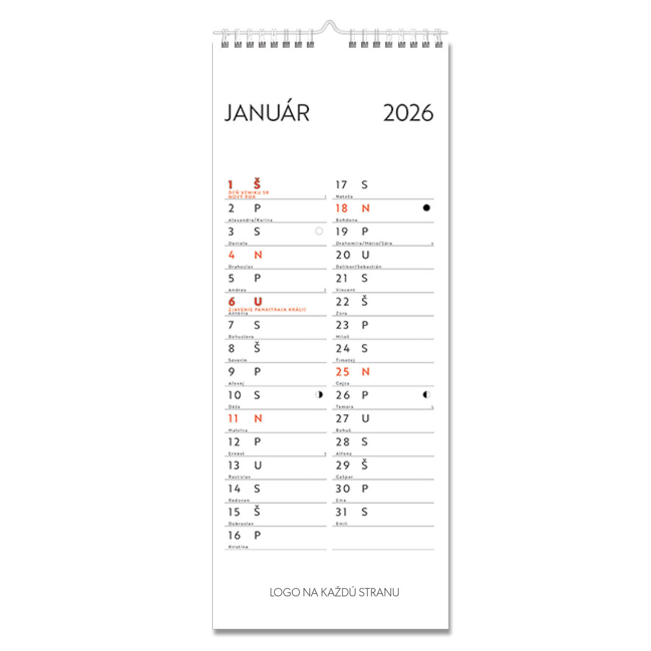 Kalendarz ścienny 2026 słowacki Miesięczny