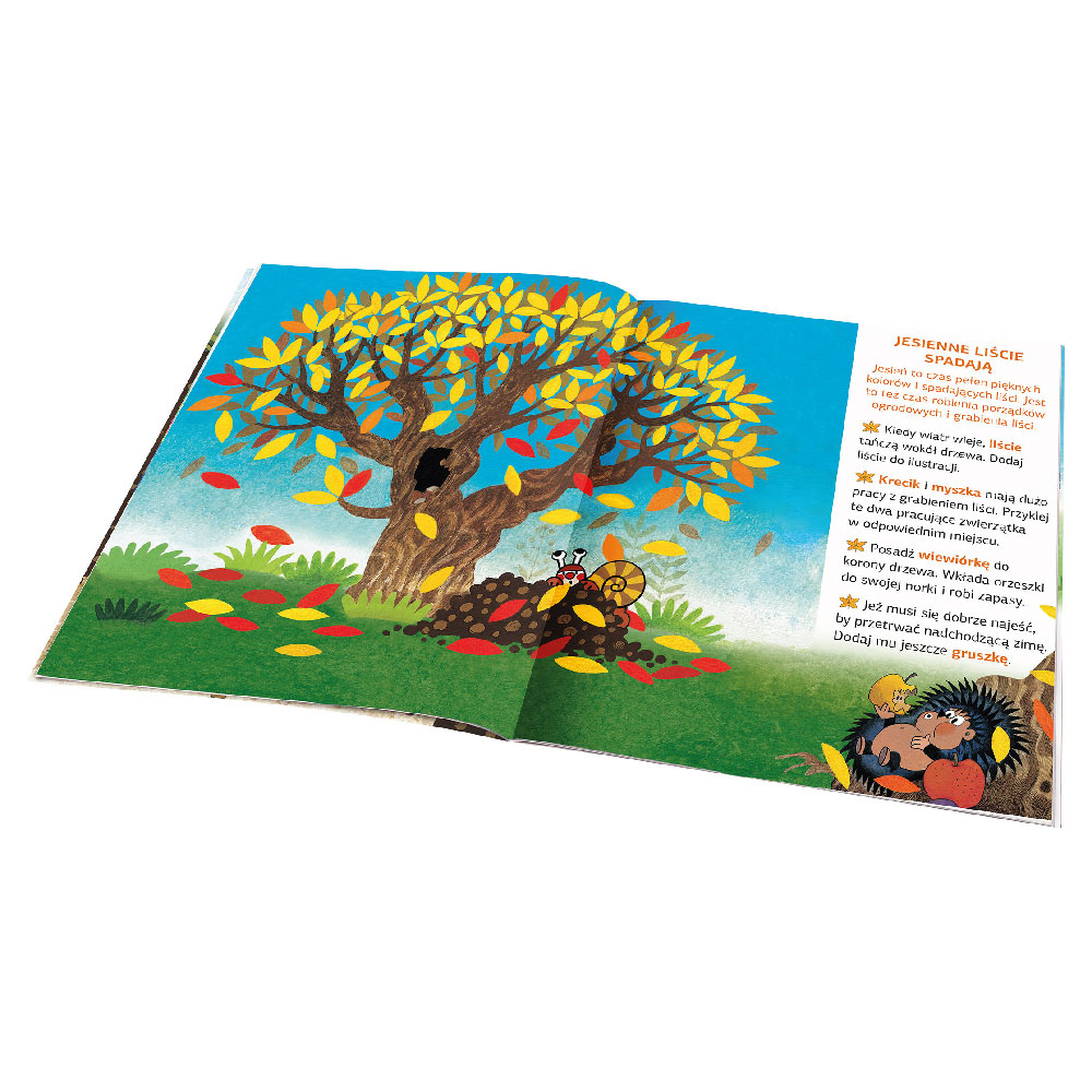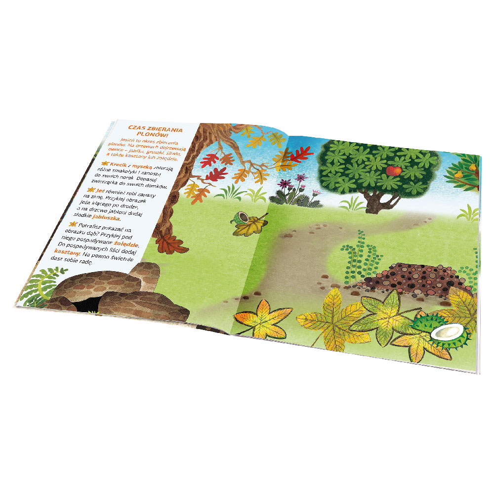 Poza tym, w książce dowiedzą się wiele nowego i ciekawego o jesień, a za pomocą naklejek mogą również ozdobić własny obrazek, pokój lub zrobić grę memo!