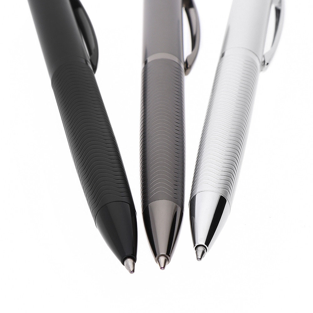 „Luksusowy, metaliczny długopis Calliope z niebieskim wypełnieniem w różnych wersjach kolorystycznych.