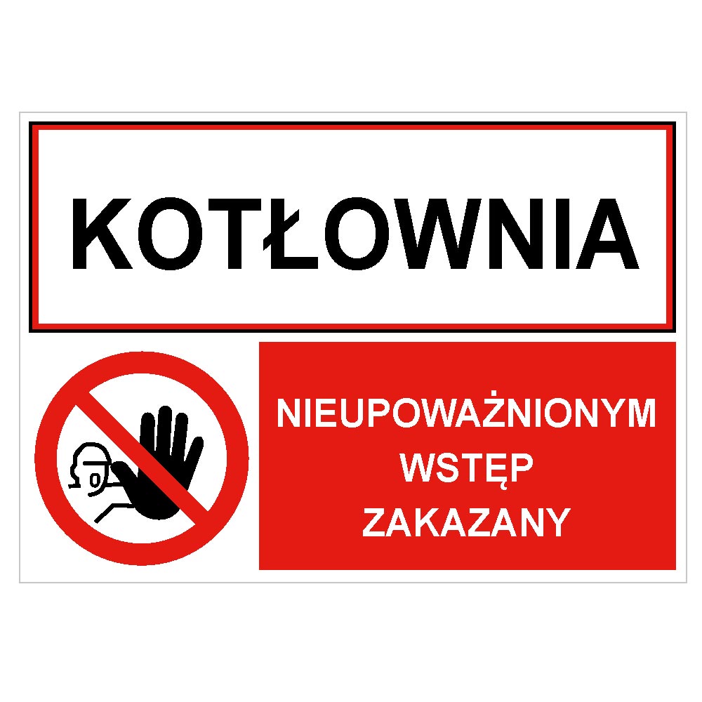 KOTŁOWNIA - NIEUPOWAŻNIONYM WSTĘP ZAKAZNY, ZNAK ŁĄCZONY, płyta PVC 2 mm, 210x148 mm