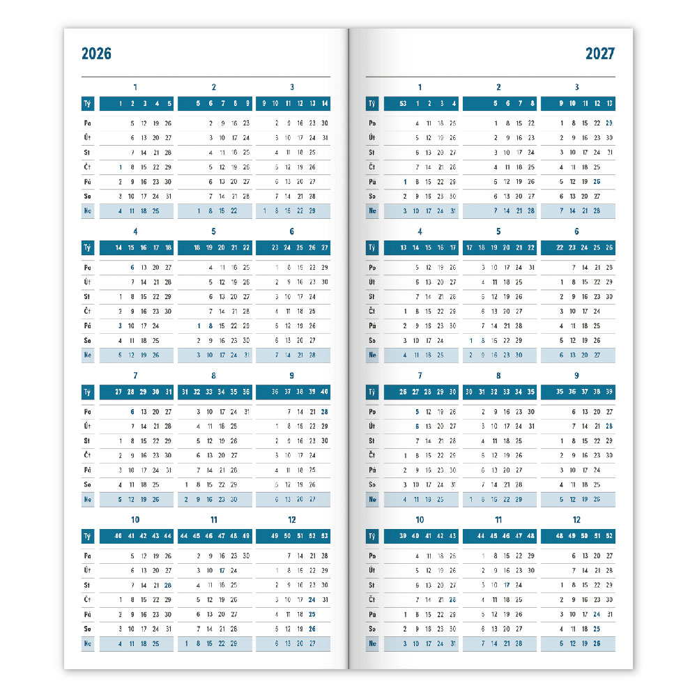 Kalendarz zawiera: czytelny kalendarz na rok 2026 i 2027,