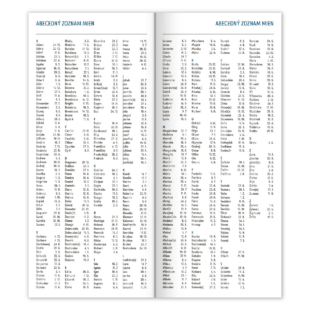 alfabetyczny wykaz imion słowacki