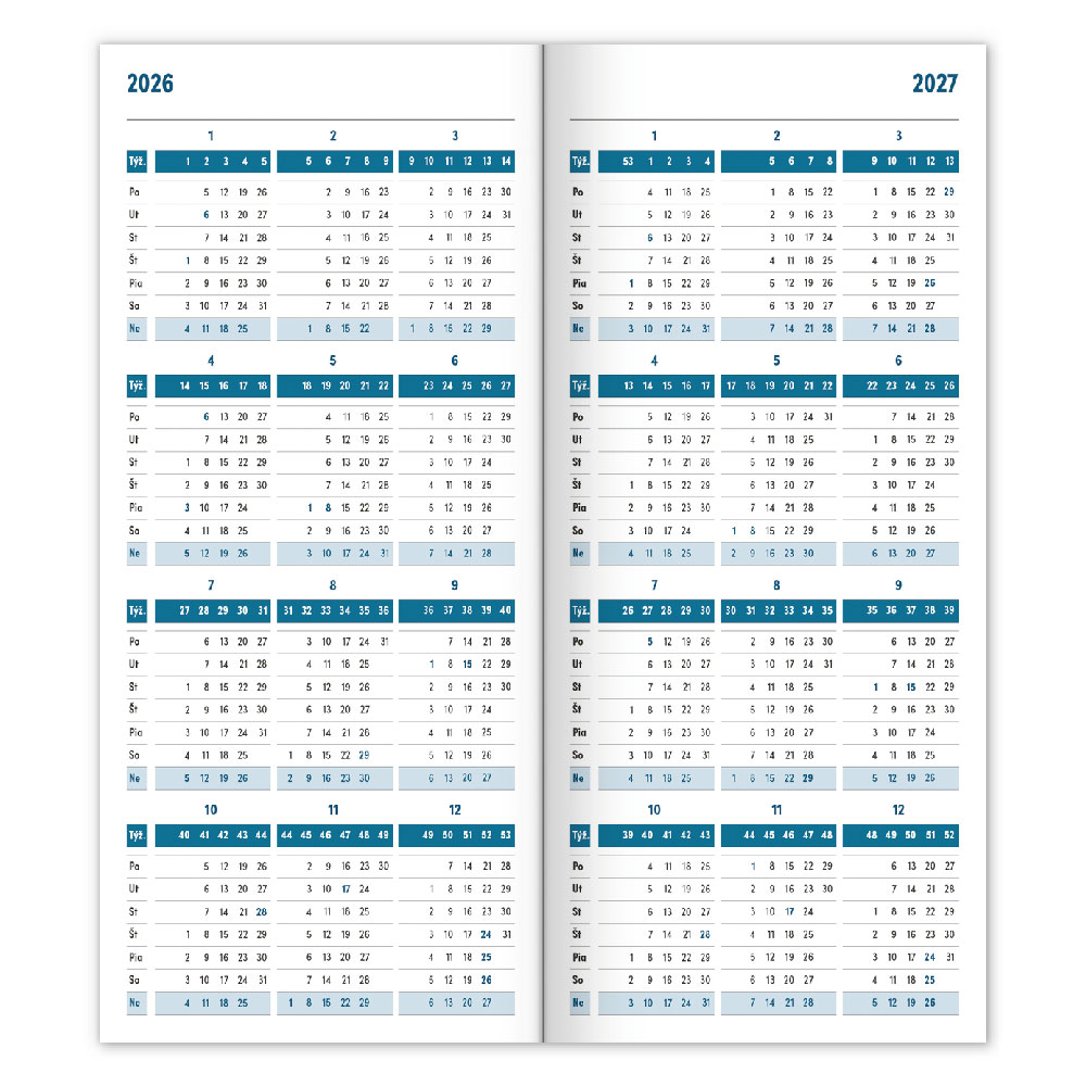 Kalendarz zawiera: czytelny kalendarz na rok 2026 i 2027,
