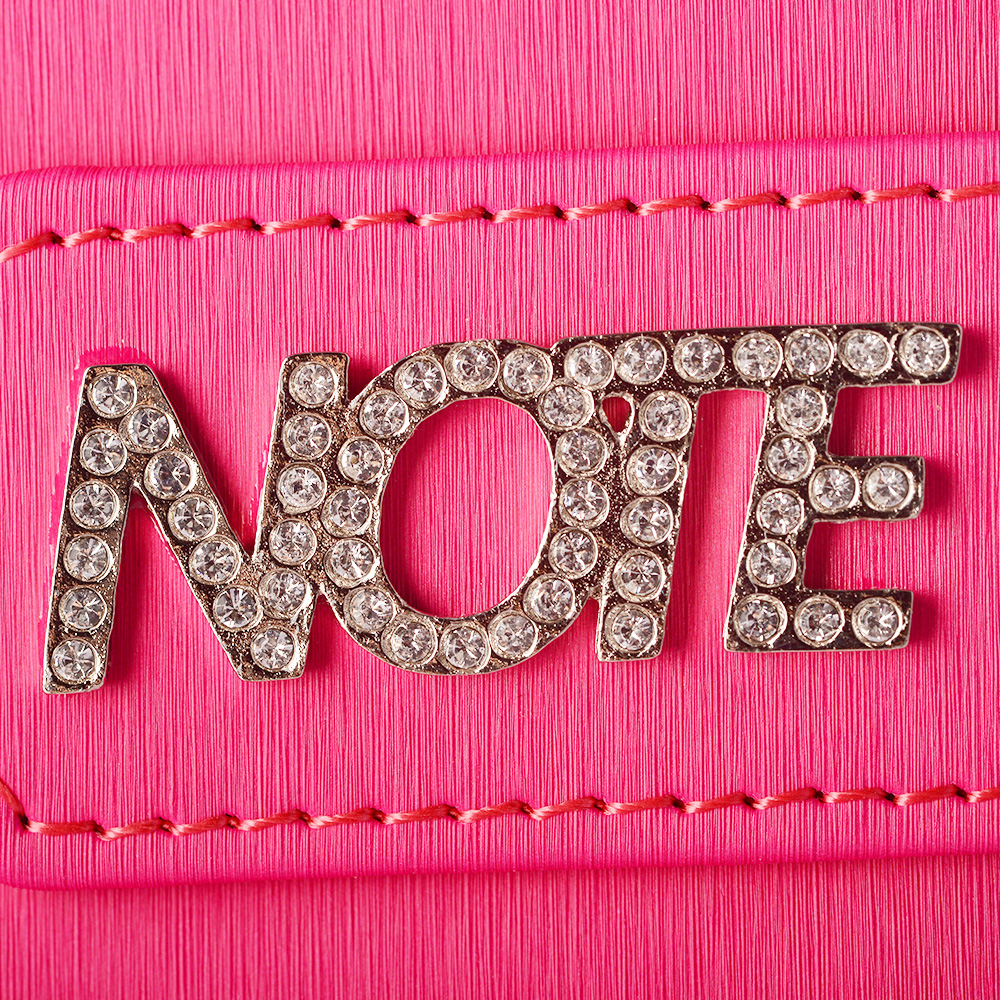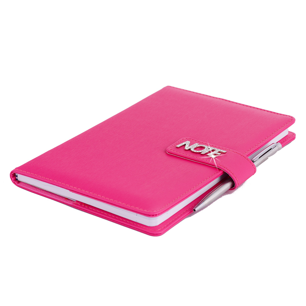 Notatnik zawiera: pętelkę na długopis, metalowy długopis oraz magnetyczne zamknięcie.