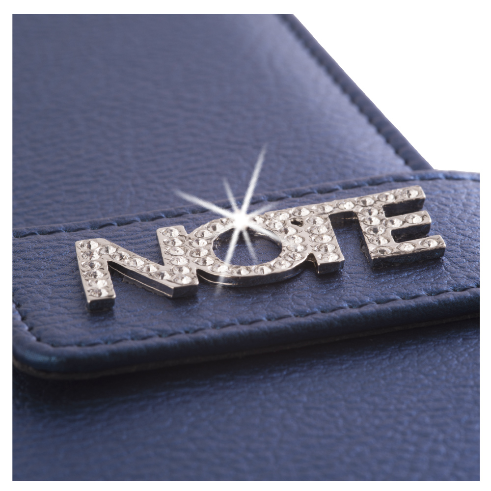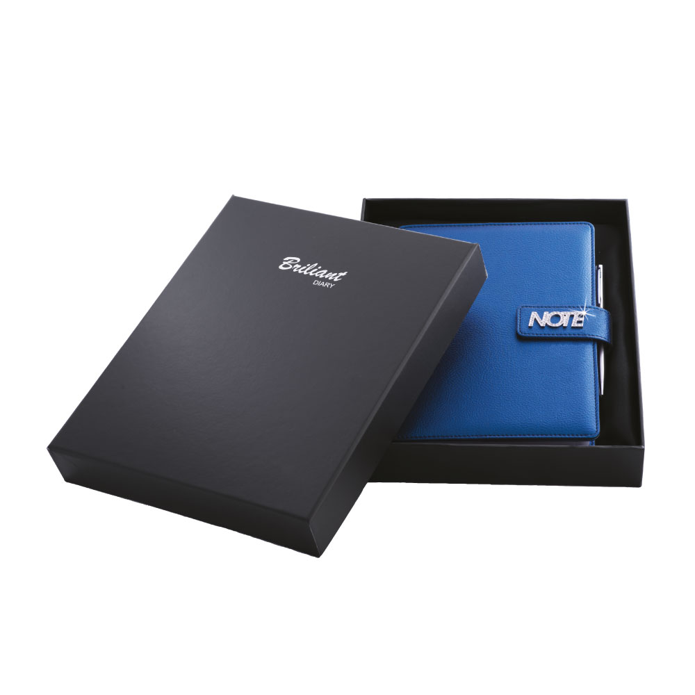Notatnik zawiera: pętelkę na długopis, metalowy długopis oraz magnetyczne zamknięcie.