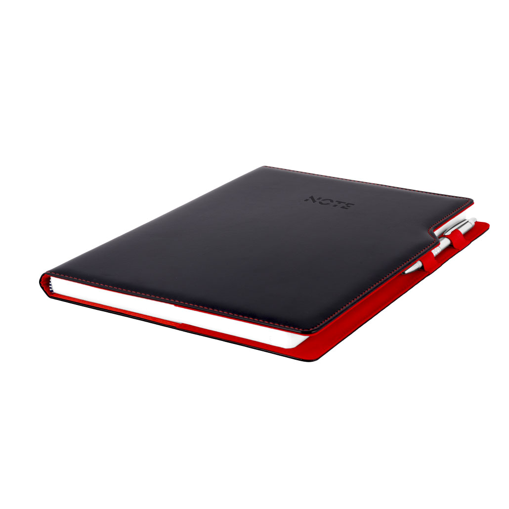 Notatnik GEP A4 kratkowany - czarny/czerwone wnętrze