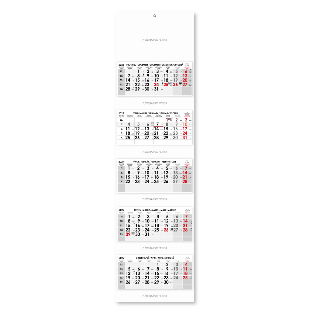 Pięciomiesięczny kalendarz Kvinto składany czeski 2027 - szary
