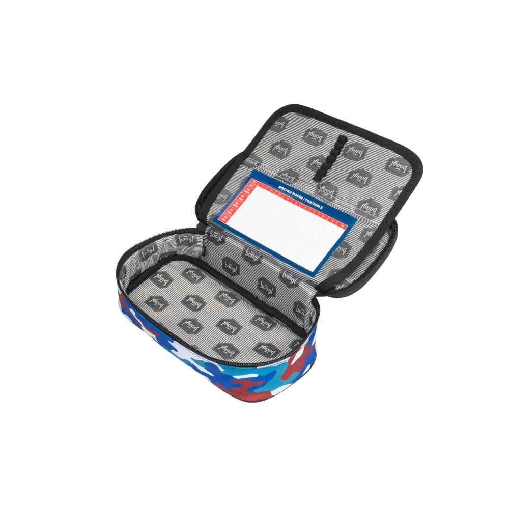 • Twardy piórnik szkolny ze składaną wewnętrzną przegrodą.
