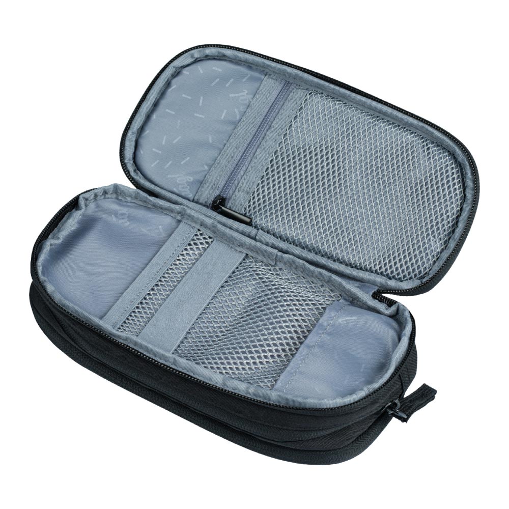 • Twardy piórnik szkolny ze składaną wewnętrzną przegrodą.