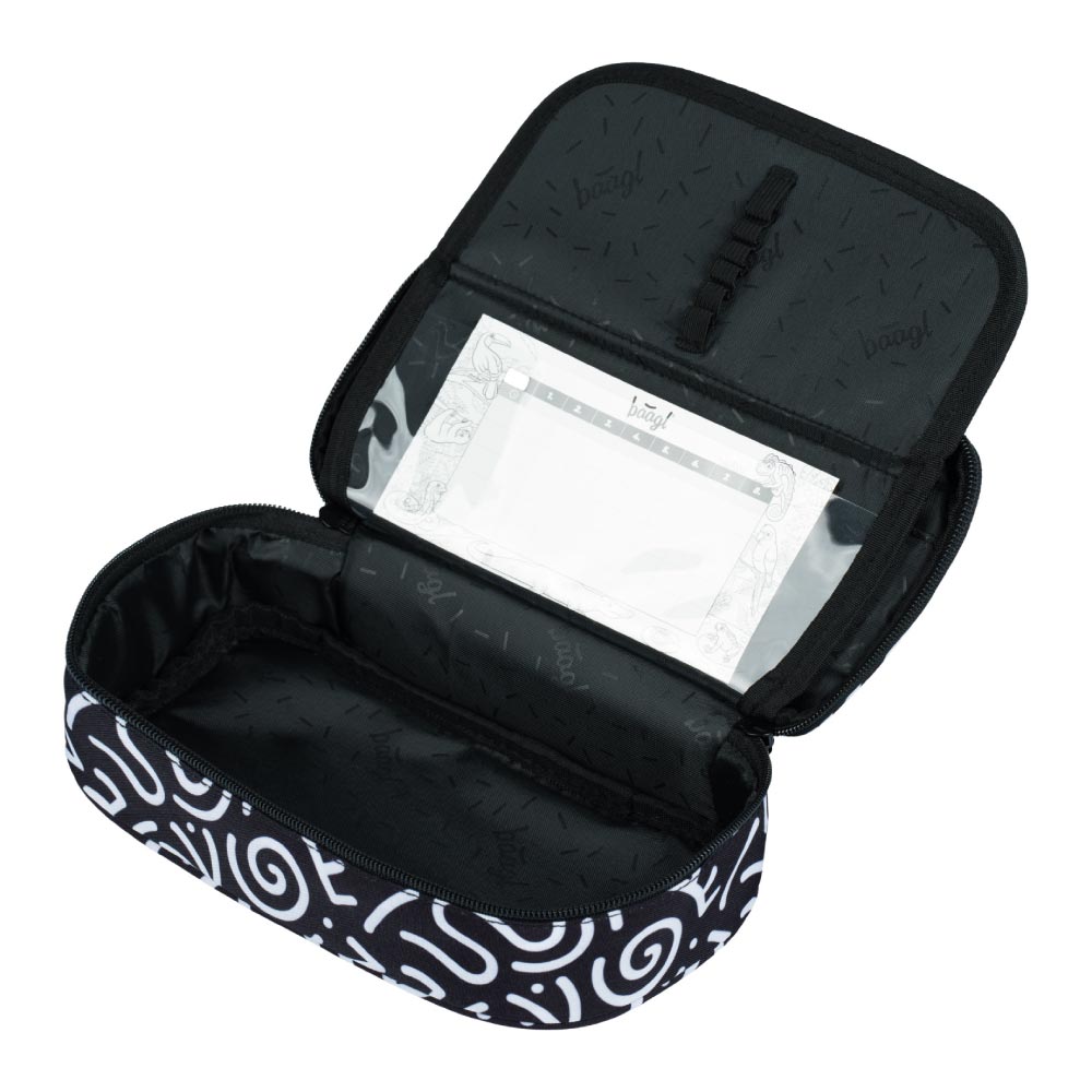 • Twardy piórnik szkolny ze składaną wewnętrzną przegrodą.