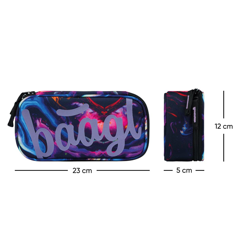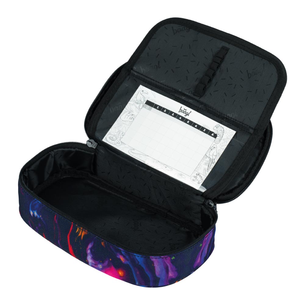 • Twardy piórnik szkolny ze składaną wewnętrzną przegrodą.