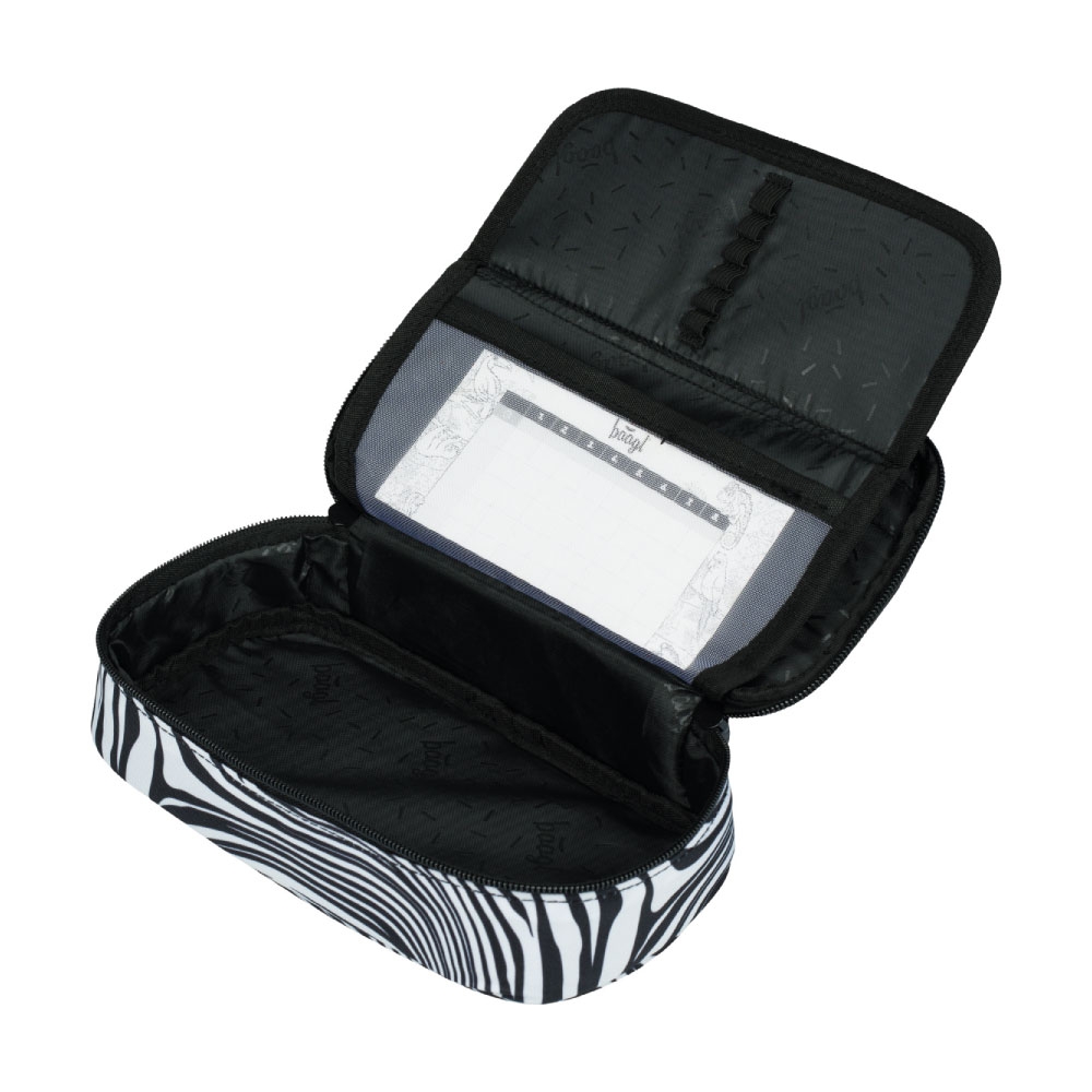 • Twardy piórnik szkolny ze składaną wewnętrzną przegrodą.