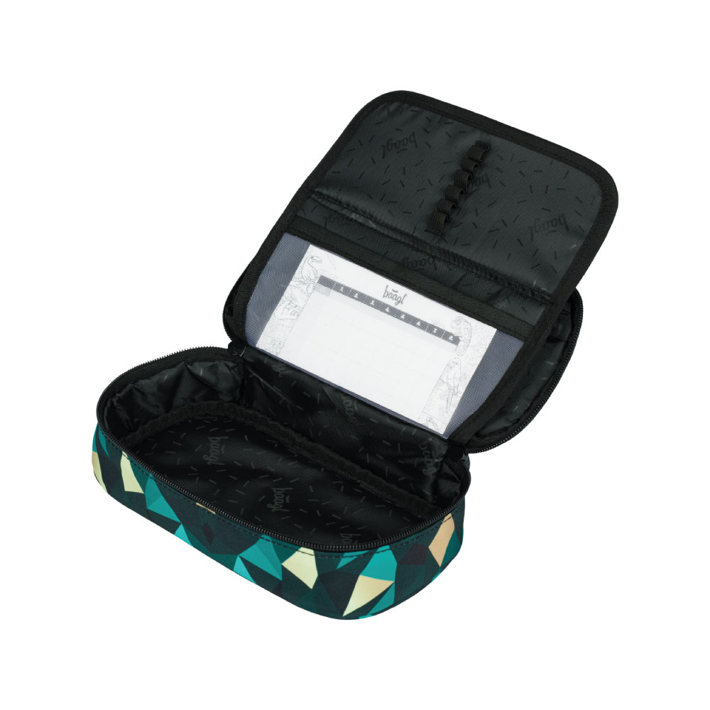 • Twardy piórnik szkolny ze składaną wewnętrzną przegrodą.