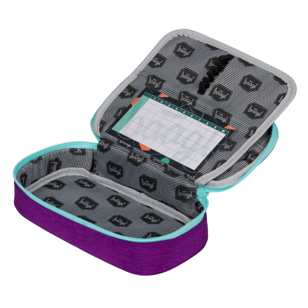 • Twardy piórnik szkolny ze składaną wewnętrzną przegrodą.