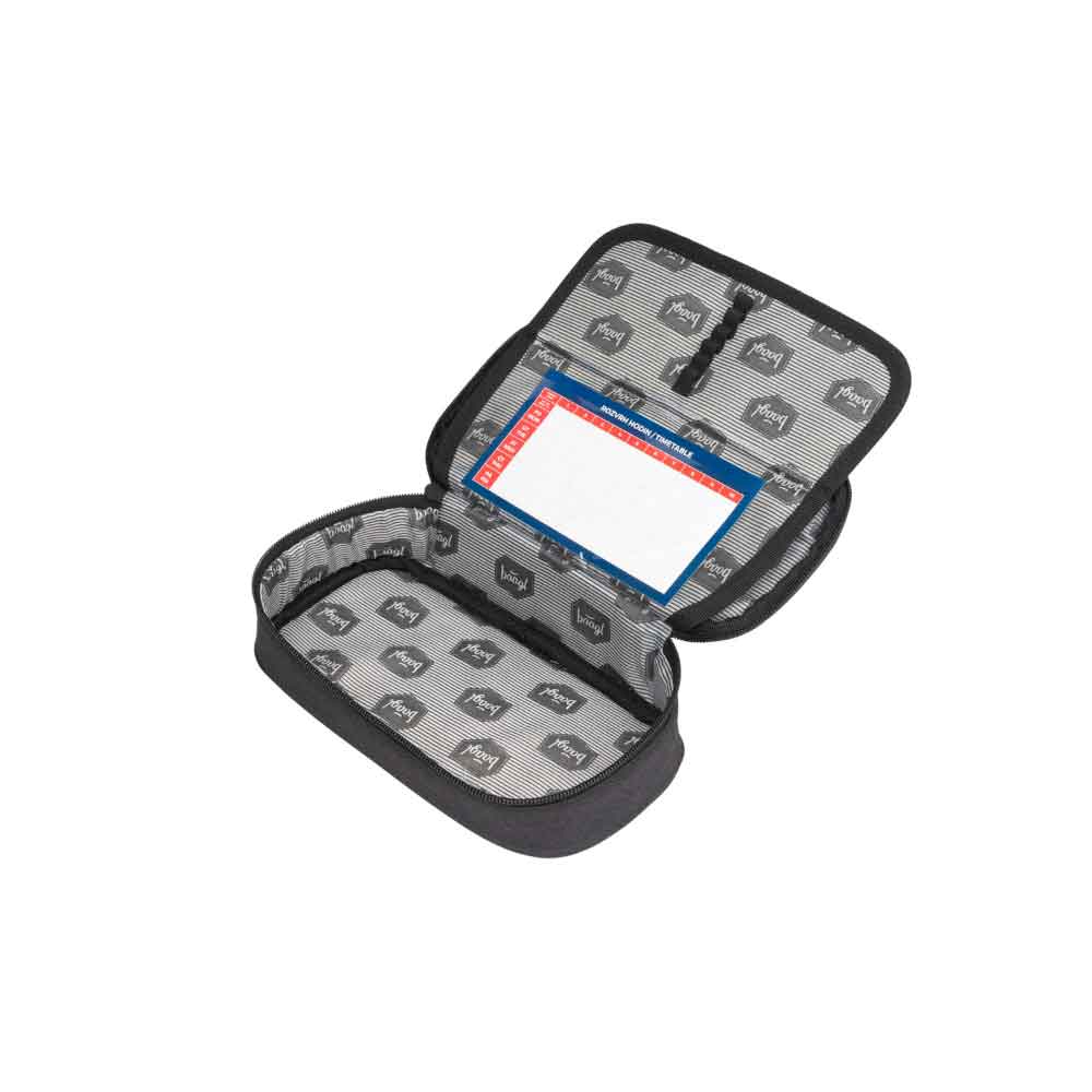 • Twardy piórnik szkolny ze składaną wewnętrzną przegrodą.