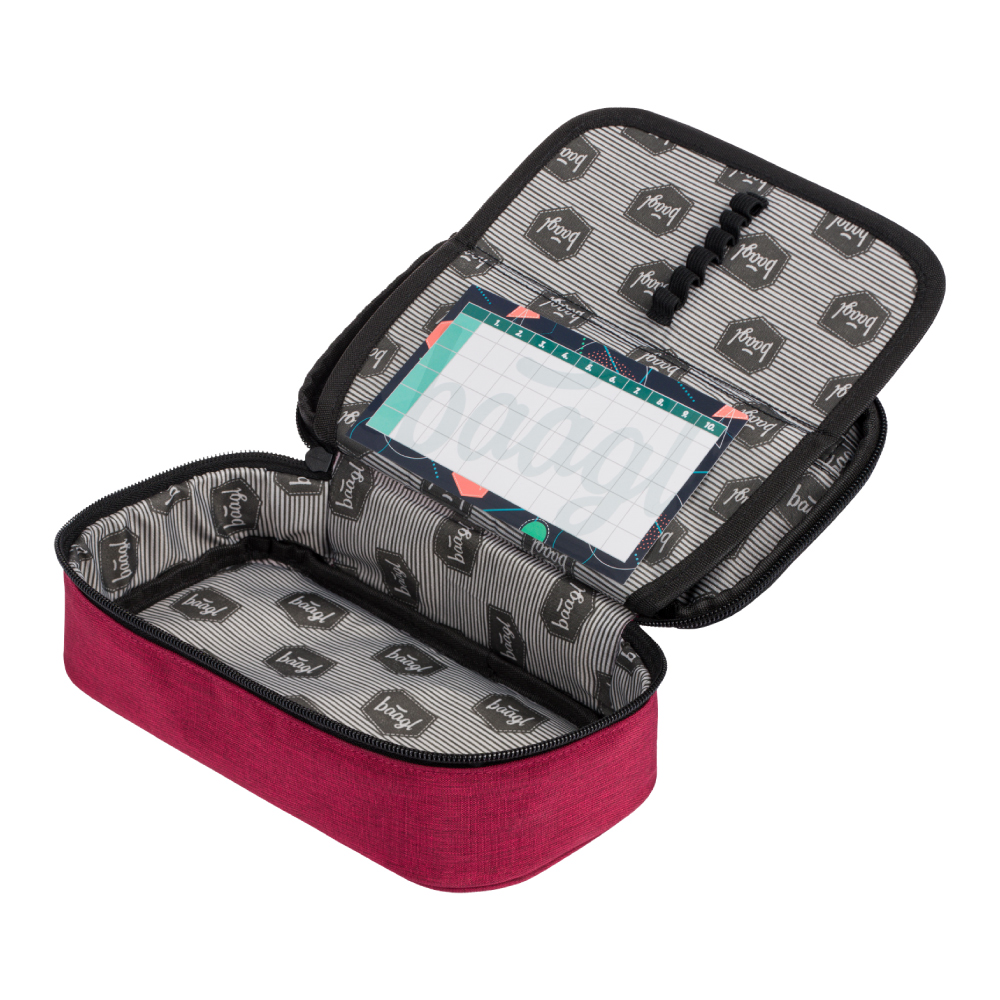 • Twardy piórnik szkolny ze składaną wewnętrzną przegrodą.