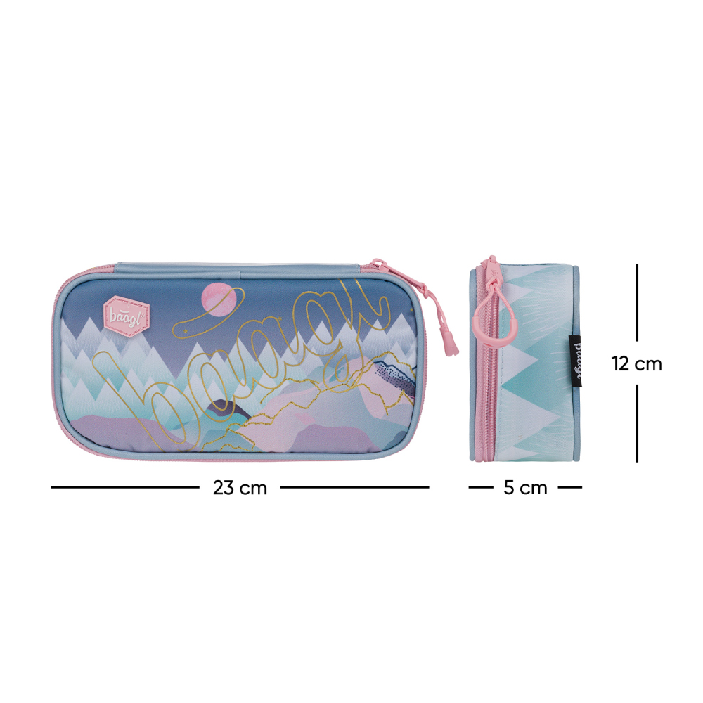 • Twardy piórnik szkolny ze składaną wewnętrzną przegrodą.