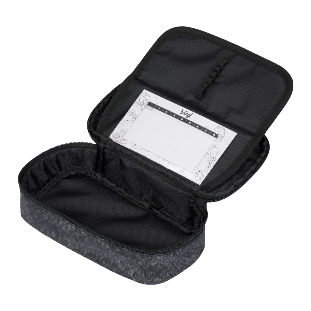 • Twardy piórnik szkolny ze składaną wewnętrzną przegrodą.