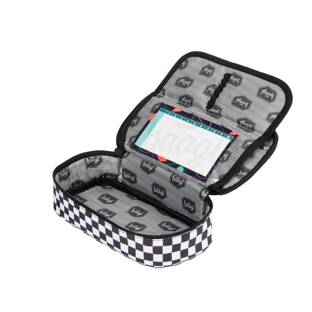 • Twardy piórnik szkolny ze składaną wewnętrzną przegrodą.