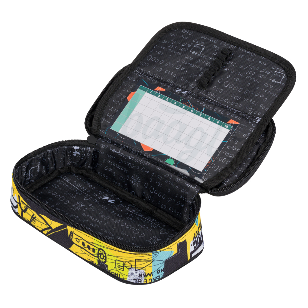 • Twardy piórnik szkolny ze składaną wewnętrzną przegrodą.