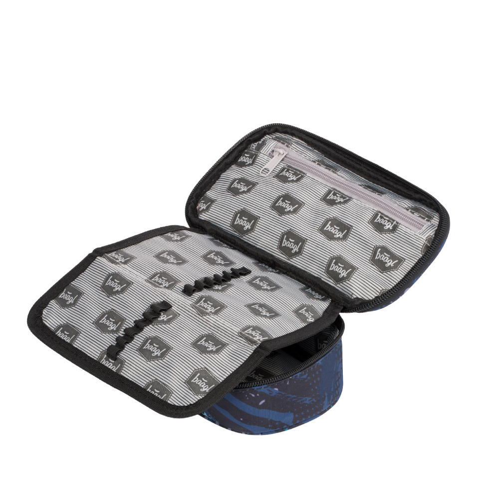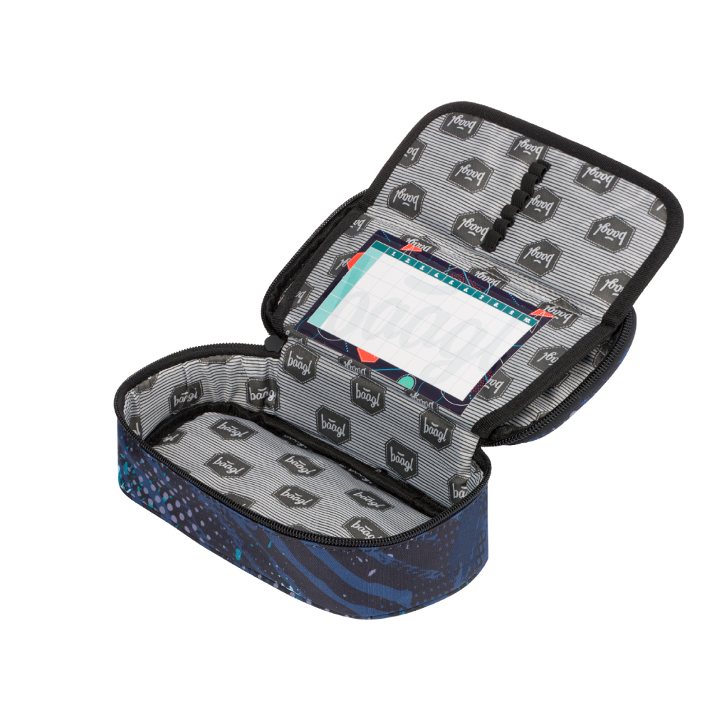 • Twardy piórnik szkolny ze składaną wewnętrzną przegrodą.