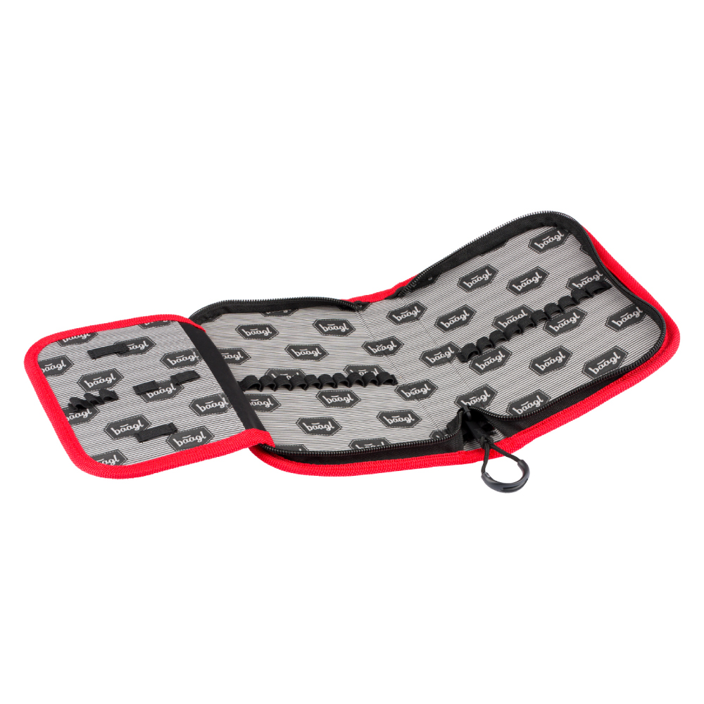 • Jednokomorowy piórnik wyposażony w jedna klapa