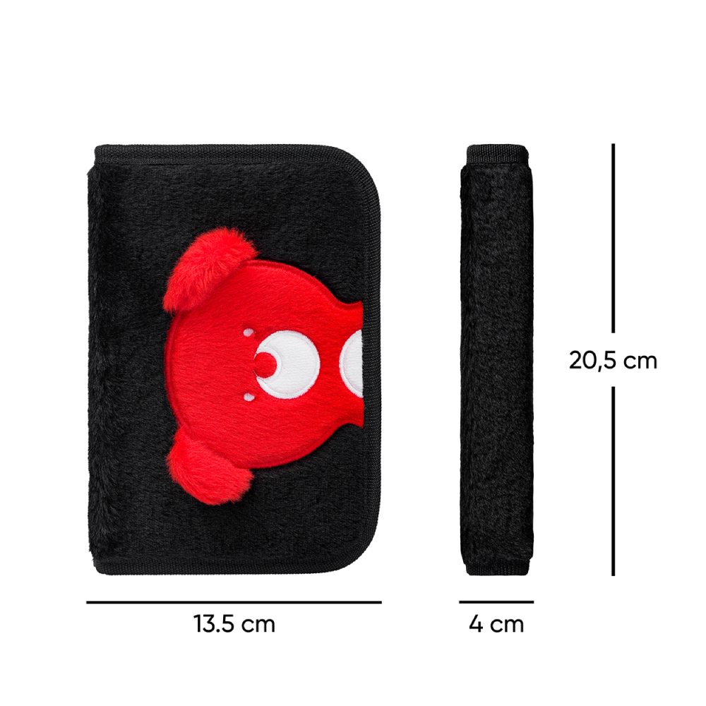 • Jednokomorowy piórnik wyposażony w dwie klapy