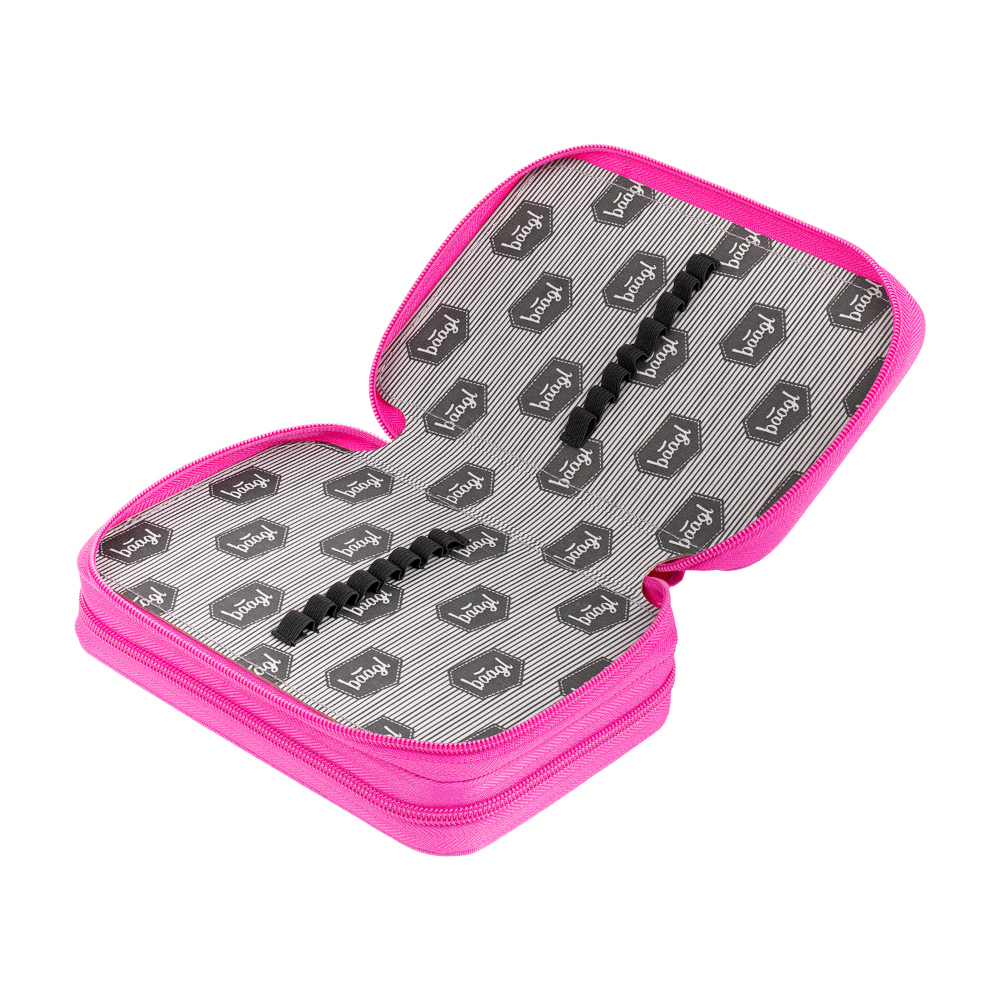 Piórnik szkolny dwupoziomowy Logo różowy