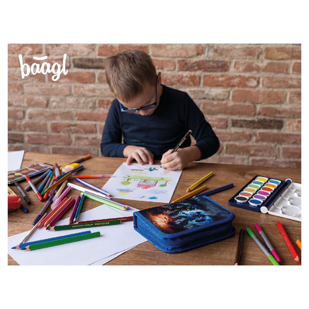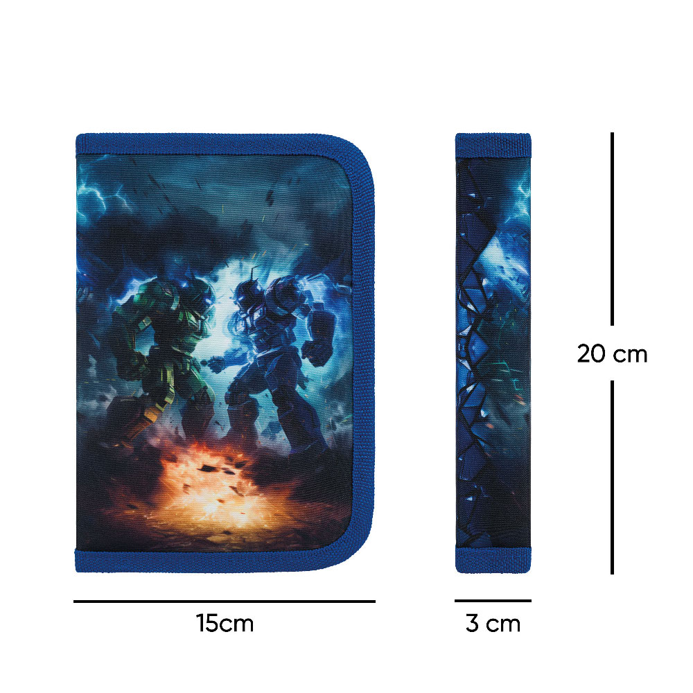 • Jednokomorowy piórnik wyposażony w dwie klapy
