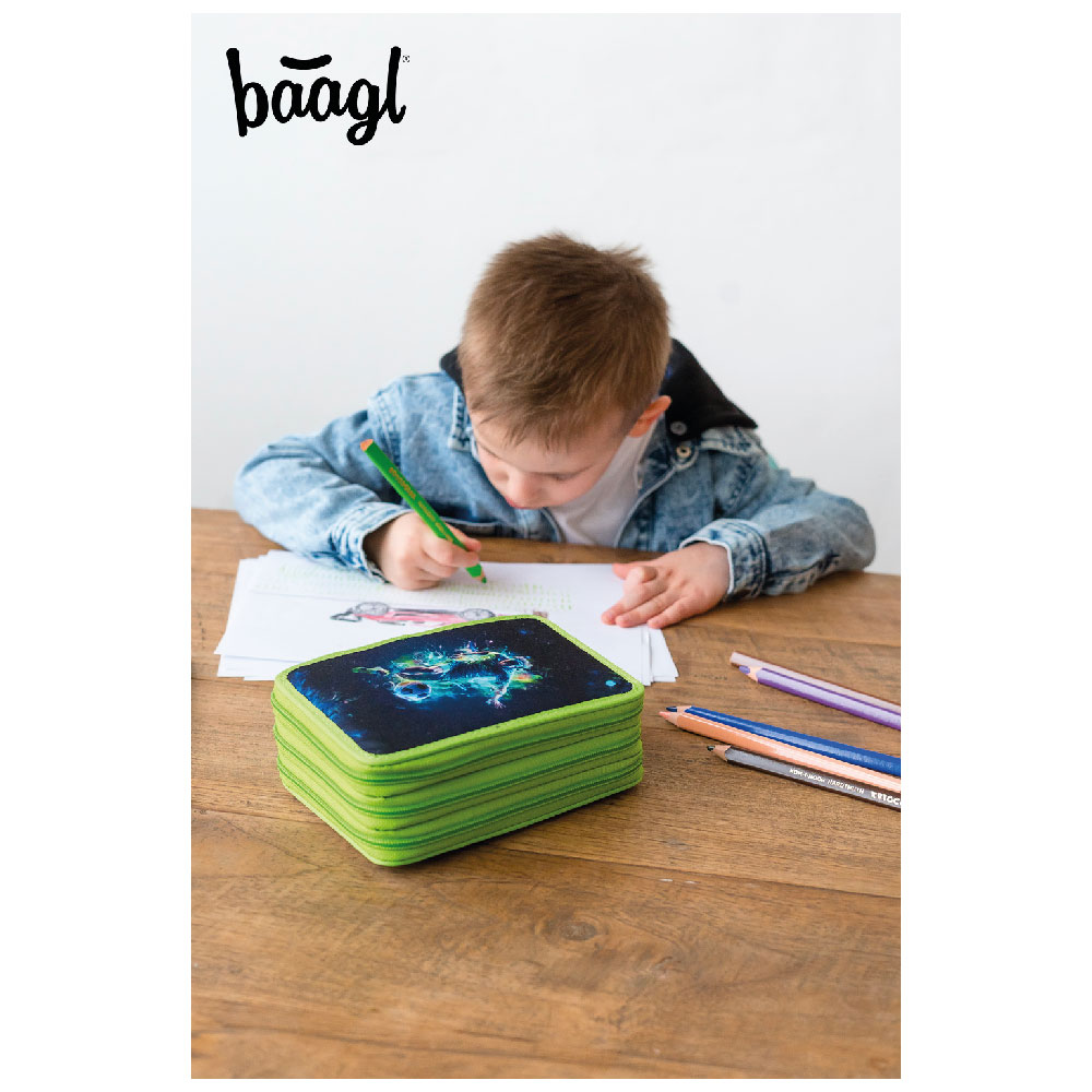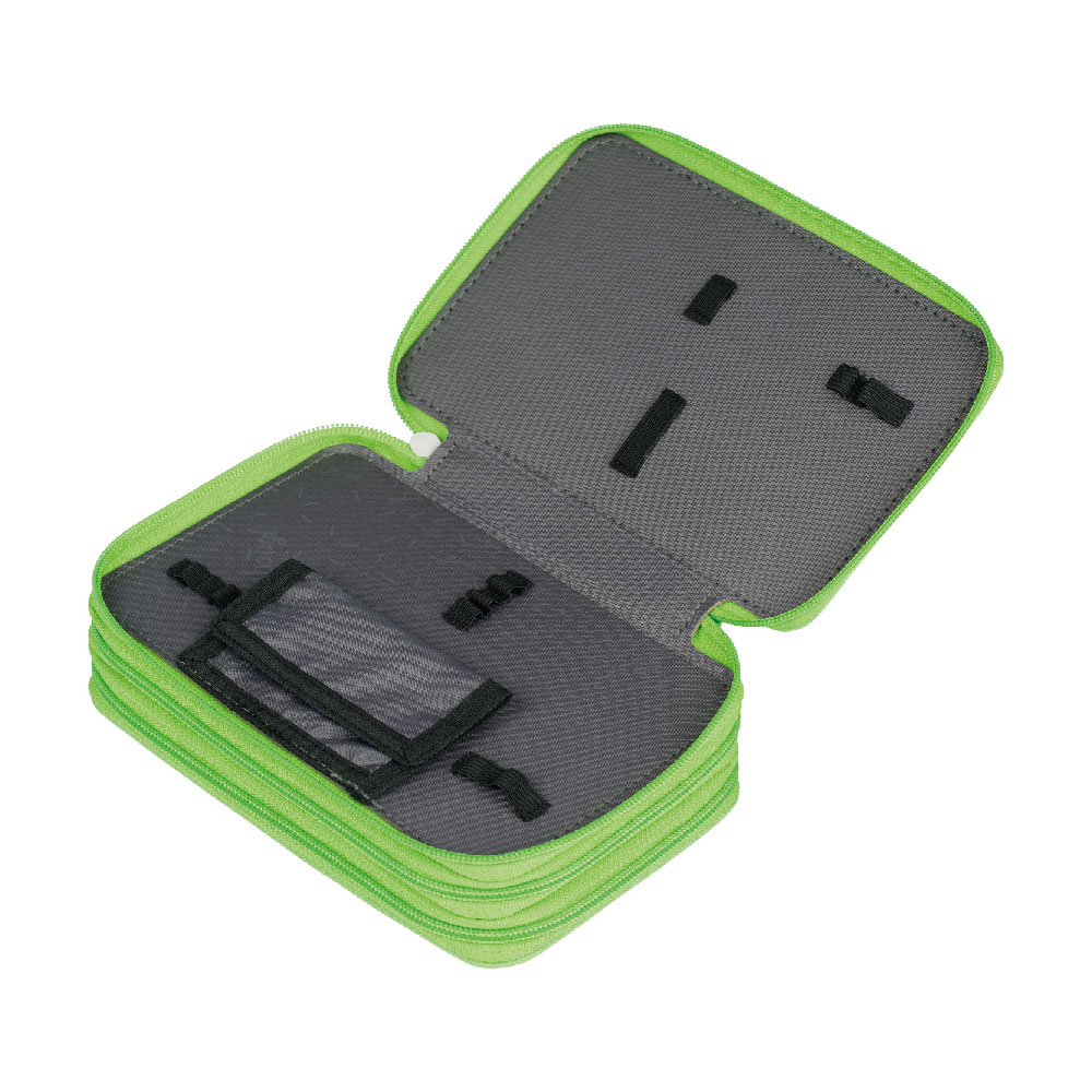 • Jednokomorowy piórnik wyposażony w dwie klapy