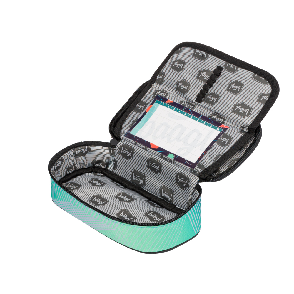 • Twardy piórnik szkolny ze składaną wewnętrzną przegrodą.