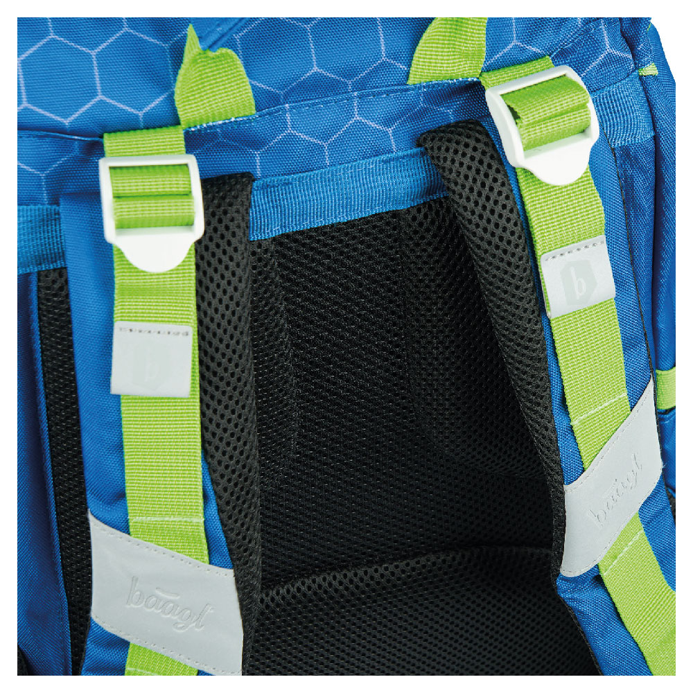 • System pleców doskonale dopasowuje się do sylwetki ucznia. Ma za zadanie wspomagać zdrowy rozwój dziecka oraz zapewnić odpowiedni przepływ powietrza wzdłuż kręgosłupa.