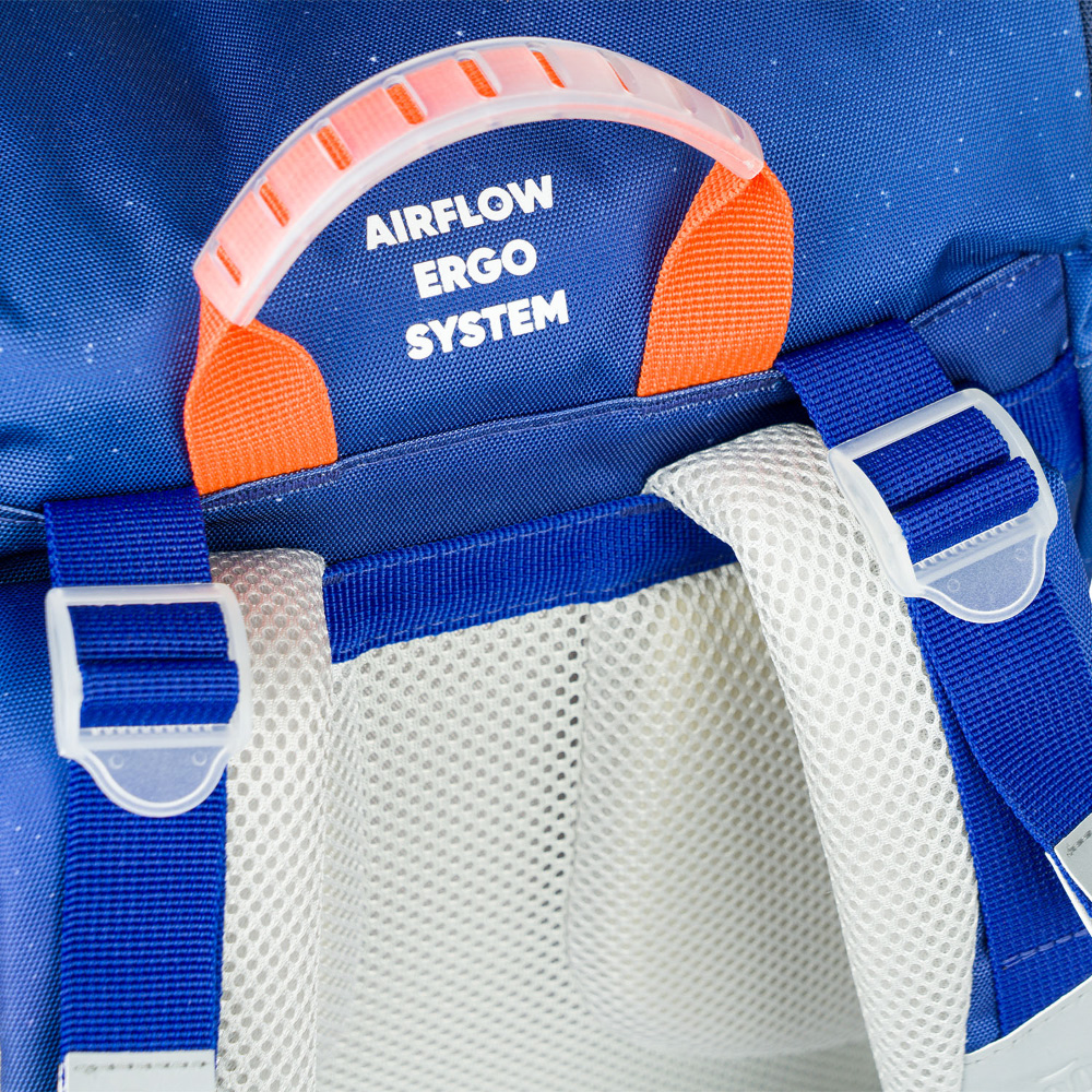 • System pleców doskonale dopasowuje się do sylwetki ucznia. Ma za zadanie wspomagać zdrowy rozwój dziecka oraz zapewnić odpowiedni przepływ powietrza wzdłuż kręgosłupa.