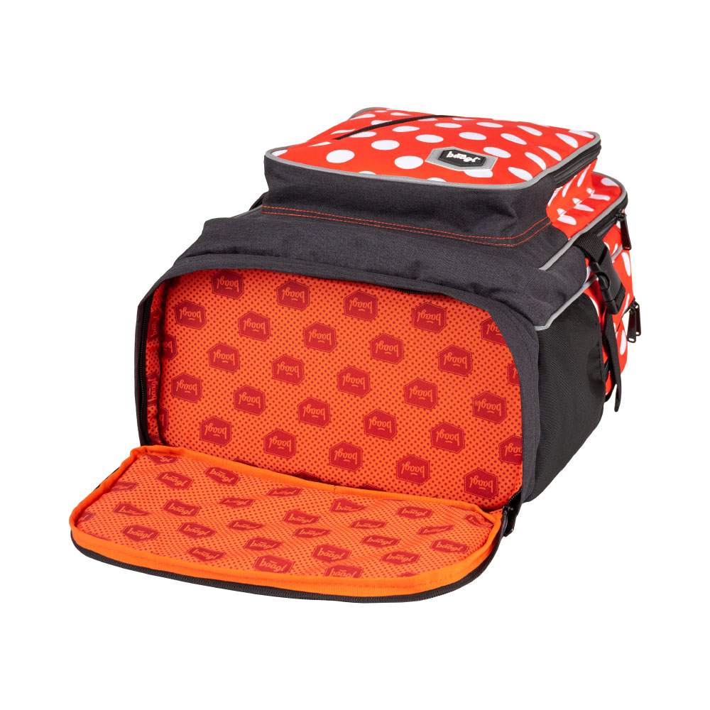 • Przednia kieszeń plecaka zawiera praktyczny organizer oraz pętlę z karabińczykiem do zawieszenia kluczy.