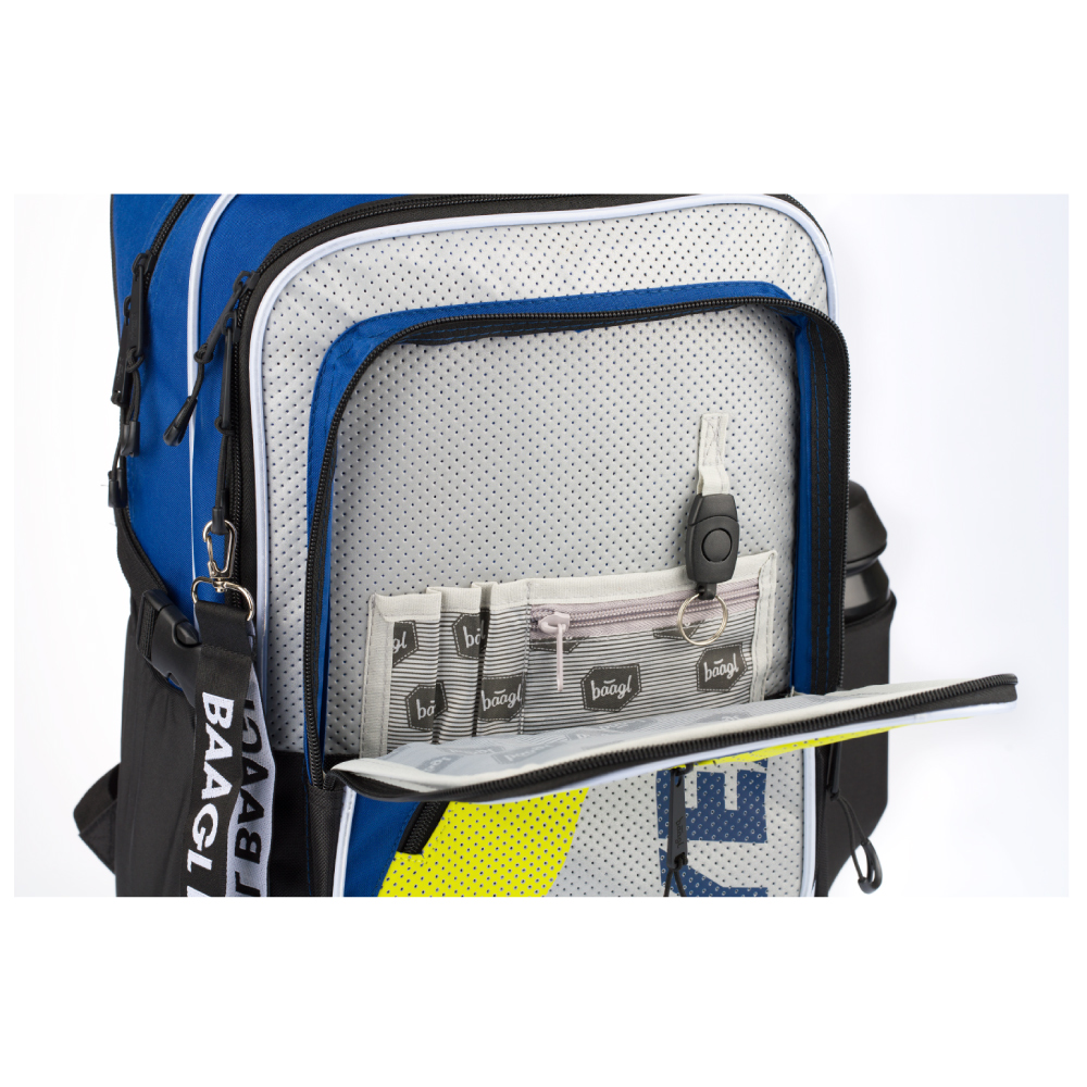 • Przednia kieszeń plecaka zawiera praktyczny organizer oraz pętlę z karabińczykiem do zawieszenia kluczy.